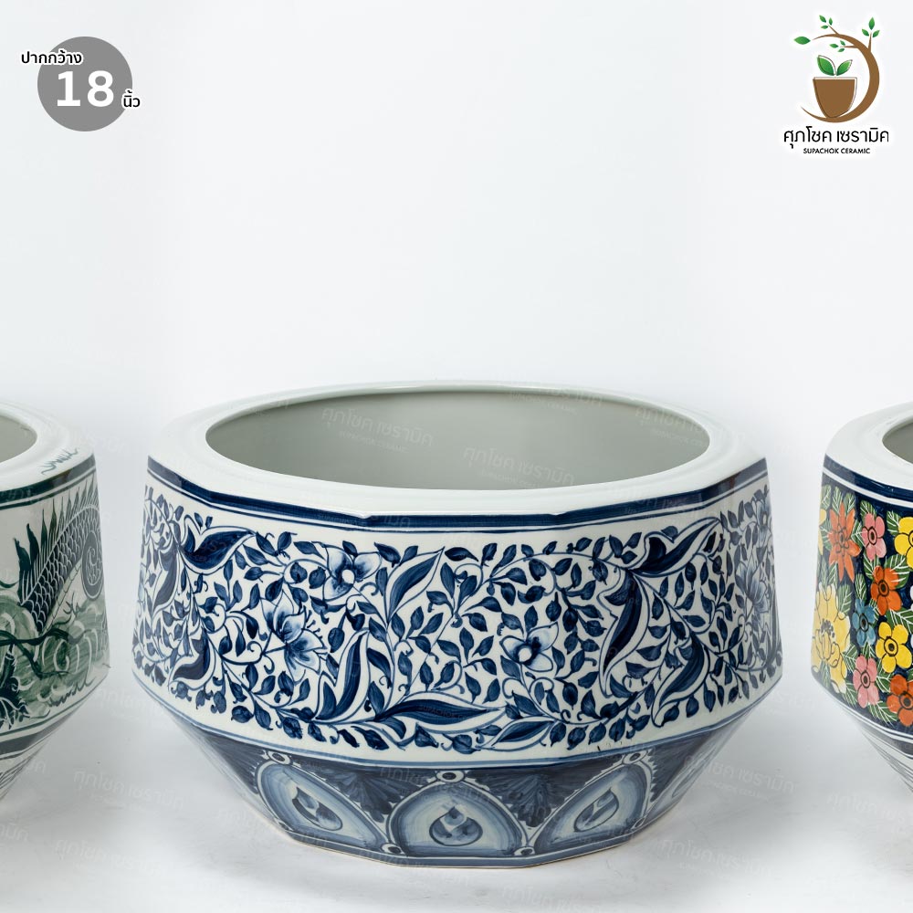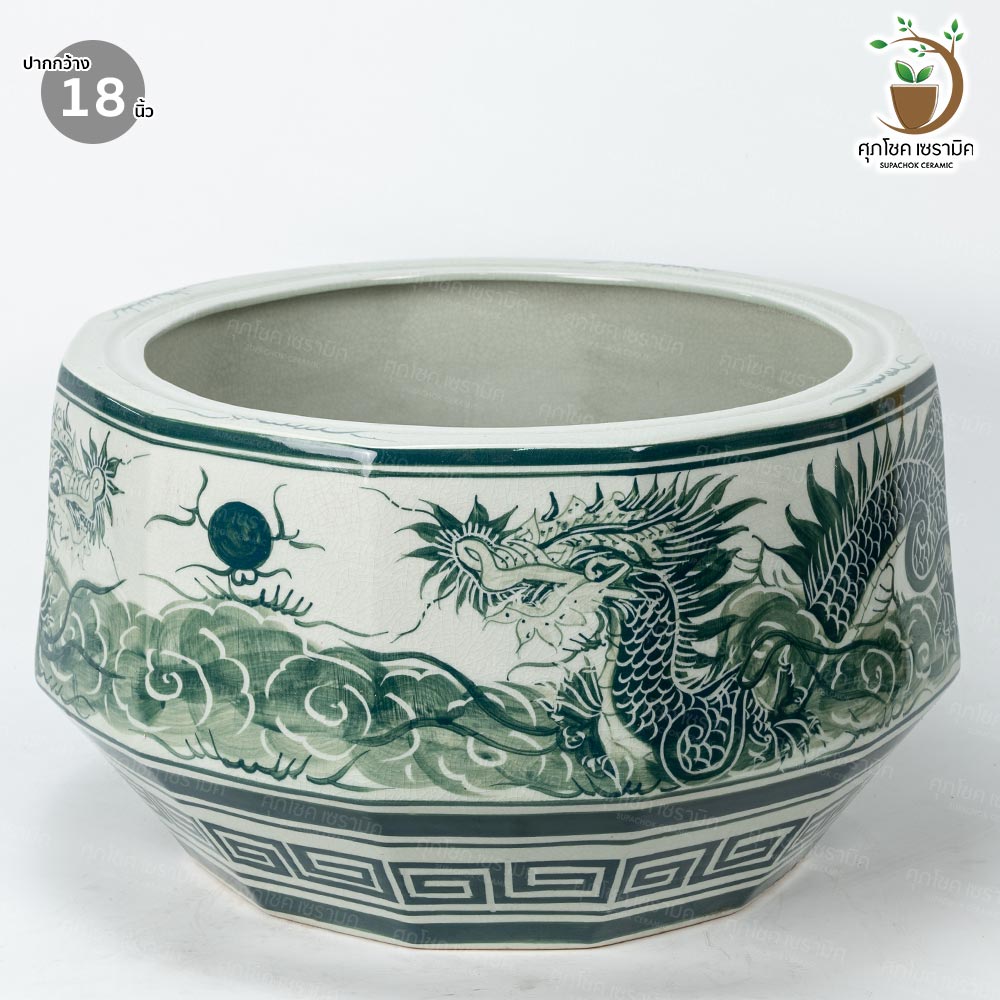 กระถางเซรามิกเคลือบ งานผลิตด้วยกรรมวิธีดั้งเดิม โดยช่างฝีมือ เหมาะสำหรับใช้เป็นกระถางปลูกต้นไม้ ปลูกบัว หรือไม้น้ำ ตกแต่งบ้านและ สวน หรือ สำนักงาน