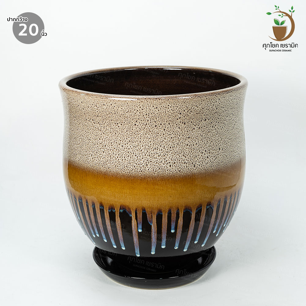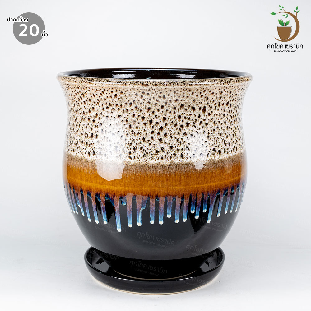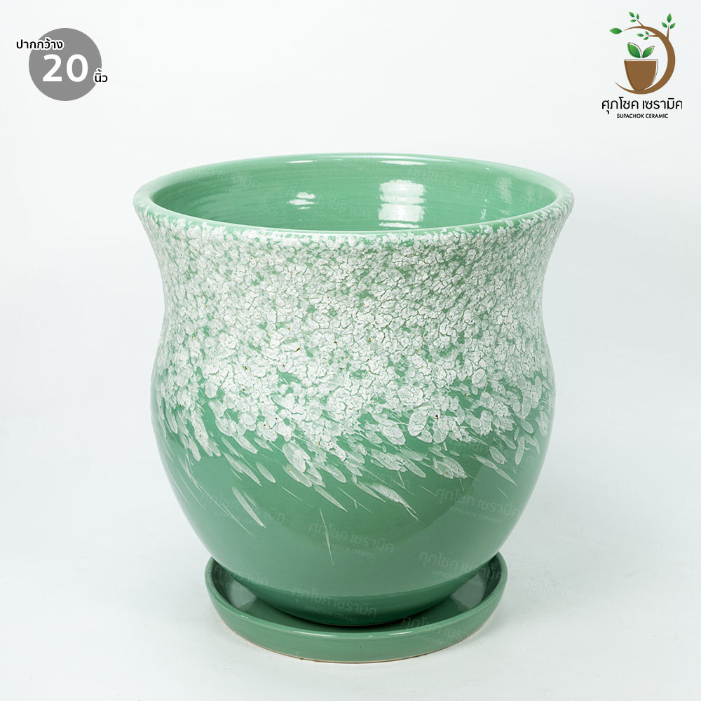 กระถางเซรามิก กระถางเซรามิคเคลือบ พร้อมจานรอง งานผลิตด้วยกรรมวิธีดั้งเดิม โดยช่างฝีมือ เหมาะสำหรับใช้เป็นกระถางปลูกต้นไม้ ตกแต่งบ้าน สวน และ สำนักงาน