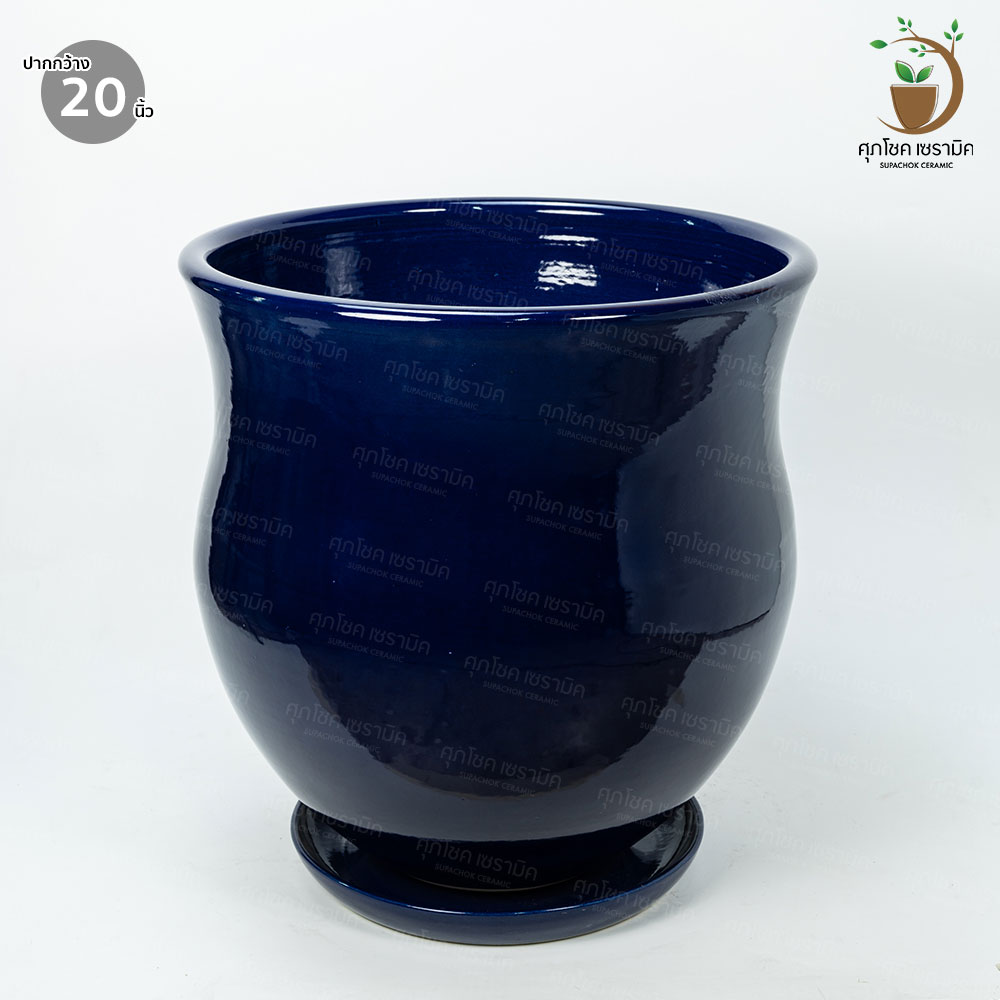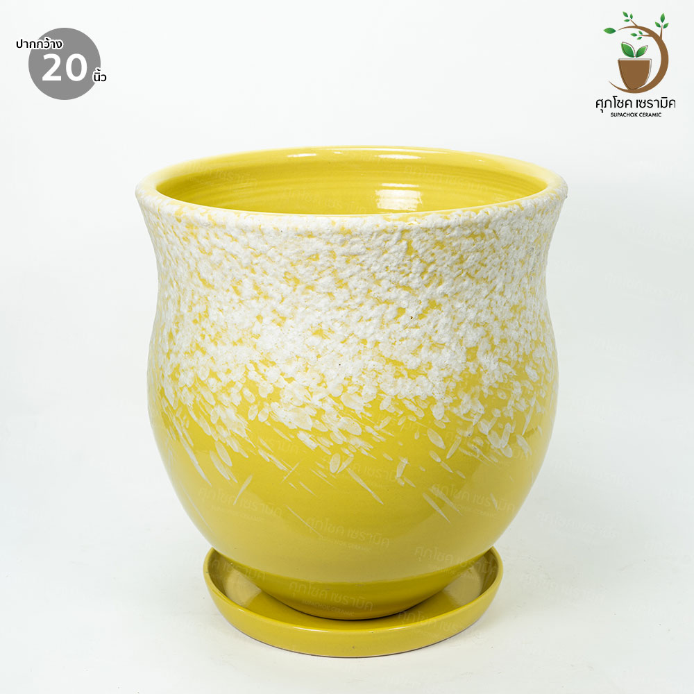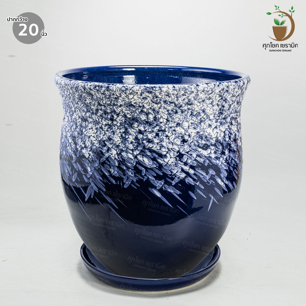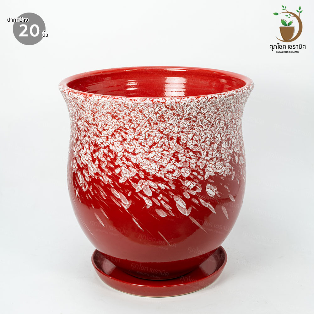 กระถางเซรามิก กระถางเซรามิคเคลือบ พร้อมจานรอง งานผลิตด้วยกรรมวิธีดั้งเดิม โดยช่างฝีมือ เหมาะสำหรับใช้เป็นกระถางปลูกต้นไม้ ตกแต่งบ้าน สวน และ สำนักงาน