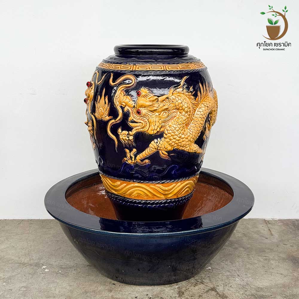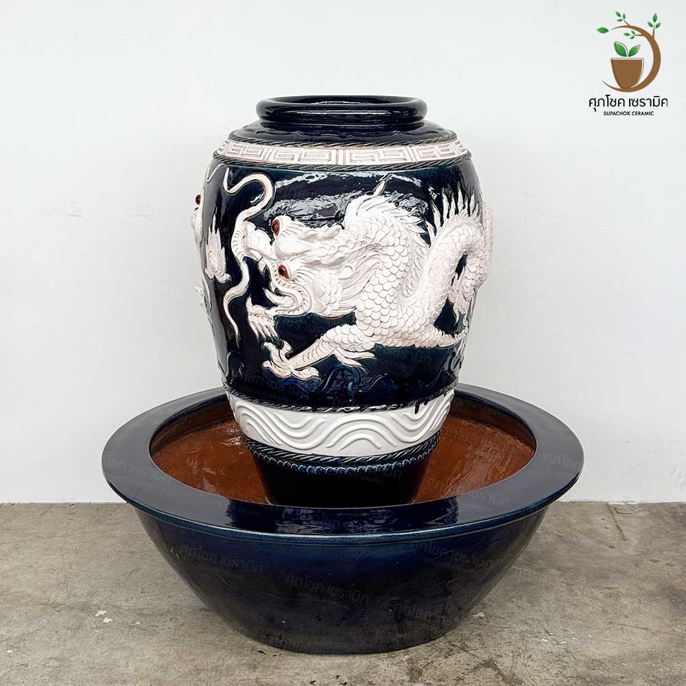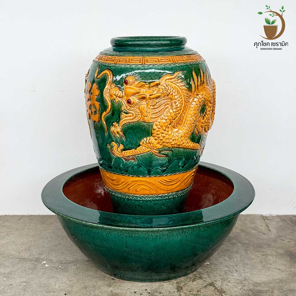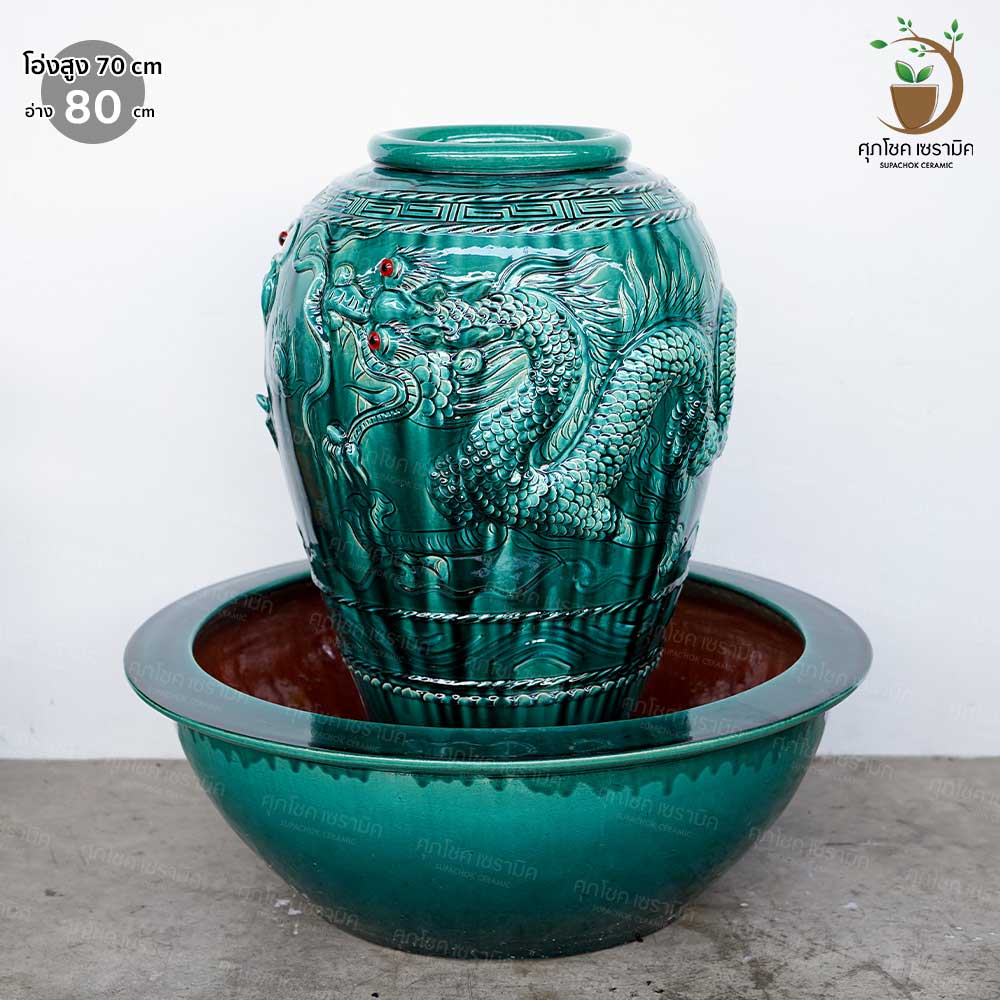 ชุดโอ่งน้ำล้นเซรามิคเคลือบ งานผลิตด้วยกรรมวิธีดั้งเดิม โดยช่างฝีมือ เหมาะสำหรับใช้เป็นเพิ่มความสดชื่นให้กับบ้าน ตกแต่งบ้านและ สวน หรือ สำนักงาน