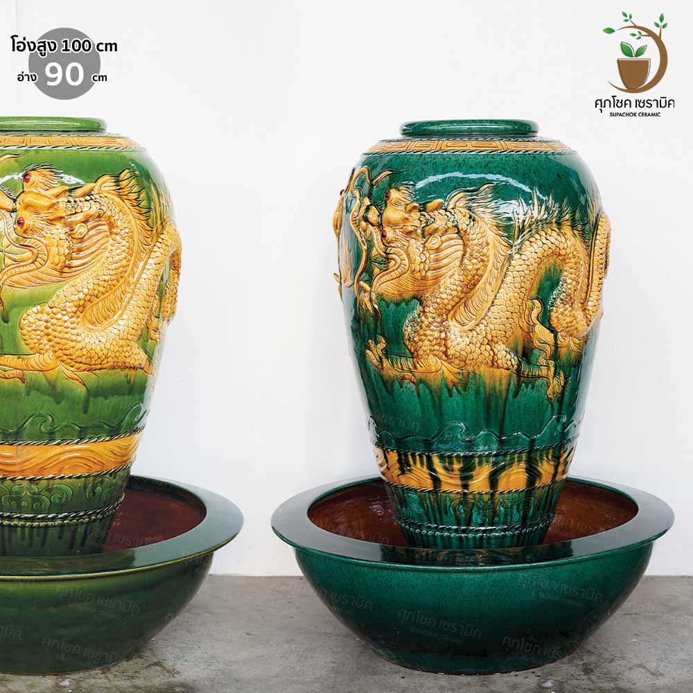 ชุดโอ่งน้ำล้นเซรามิคเคลือบ งานผลิตด้วยกรรมวิธีดั้งเดิม โดยช่างฝีมือ เหมาะสำหรับใช้เป็นเพิ่มความสดชื่นให้กับบ้าน ตกแต่งบ้านและ สวน หรือ สำนักงาน